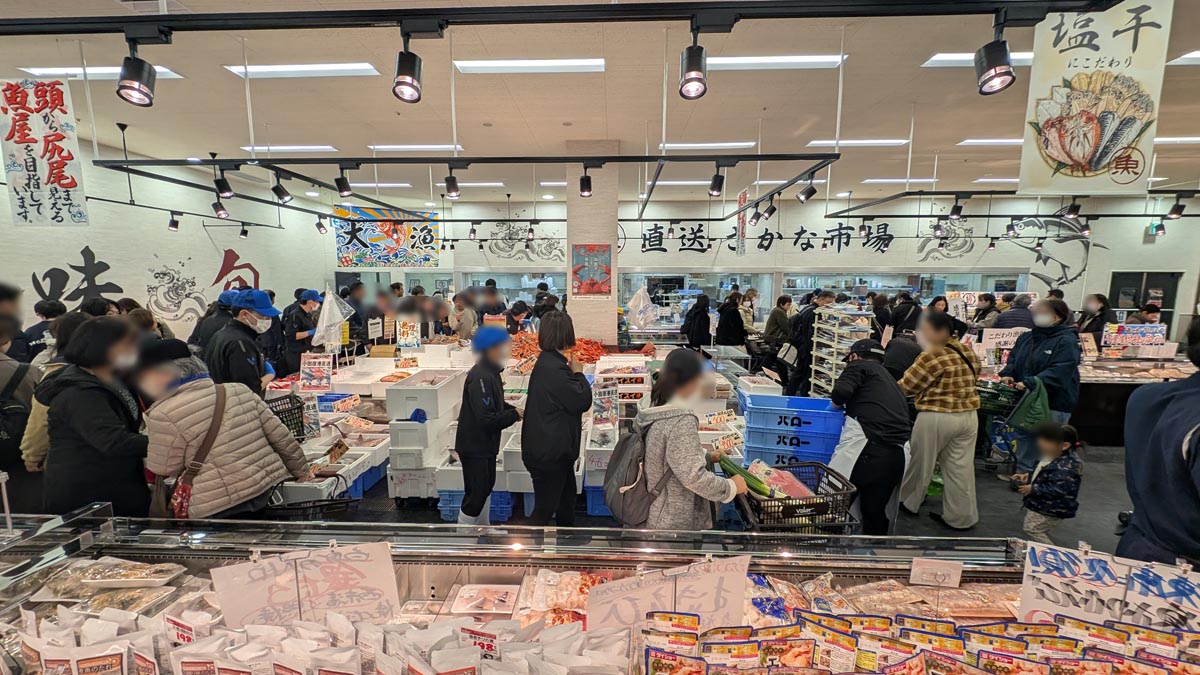 買い物客は「すごく安い。3000円くらい(コメ)1袋。安くないですか?(他だと)買えない。4000円か5000円くらいする」「海鮮系がすごかった。カニとかいっぱい。品ぞろえが良かった」「1000円のうなぎと158円の卵と、1玉100円のキウイと半額だった肉。魚とか、すごくいっぱい生鮮が並んでたので、そういう店が(近くに)ないのでありがたい」「お米とかやっぱり手が出せないし、パンとか安かったのもありがたい。パンも今1個高い。(ここは)100円くらいで買えるパンが多い」と品ぞろえや値段に満足した様子でした。