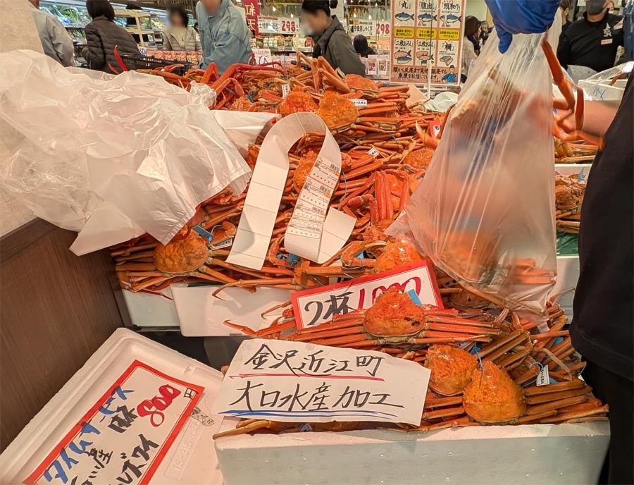 開店特価で、金沢の近江町市場からのズワイガニが2杯で1,000円!