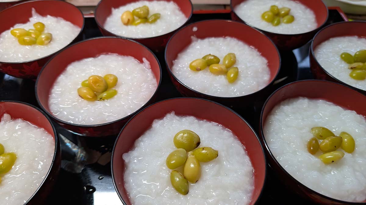 今日の定例坐禅会では、境内のイチョウから採れた銀杏をお粥に乗せていただきました。
