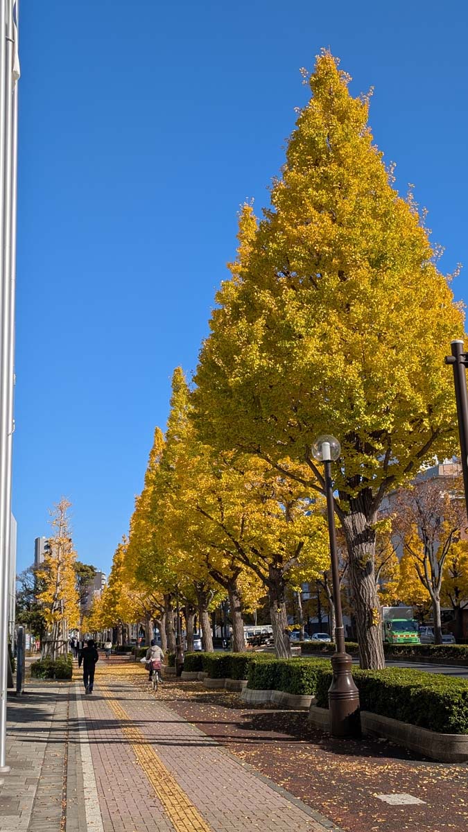会場へ向かう途中、川崎富士見通りの銀杏並木はみごとに黄色く色づいておりました。