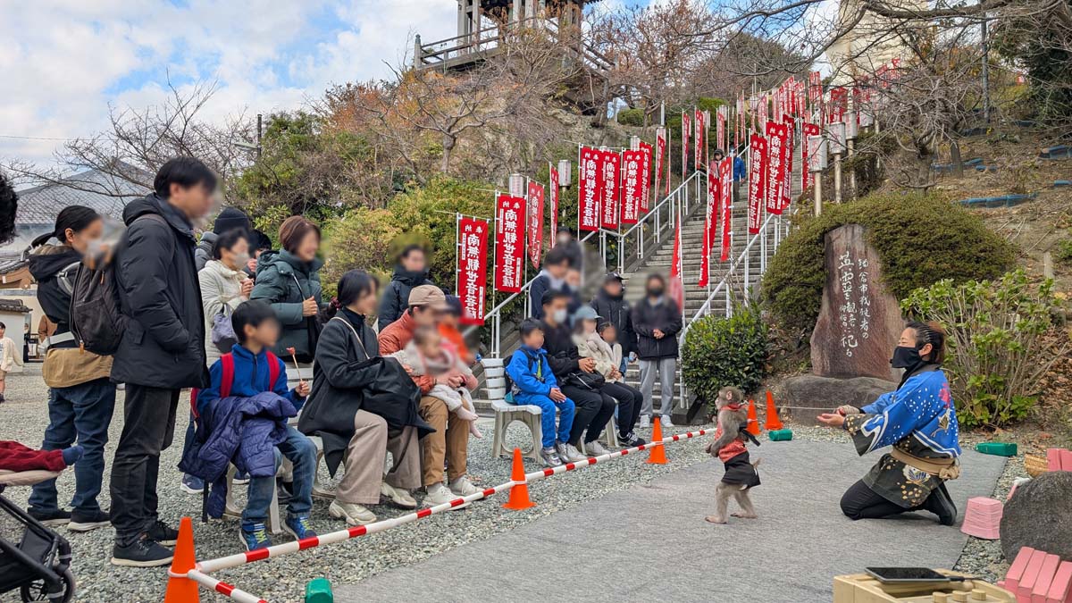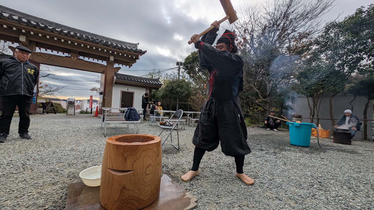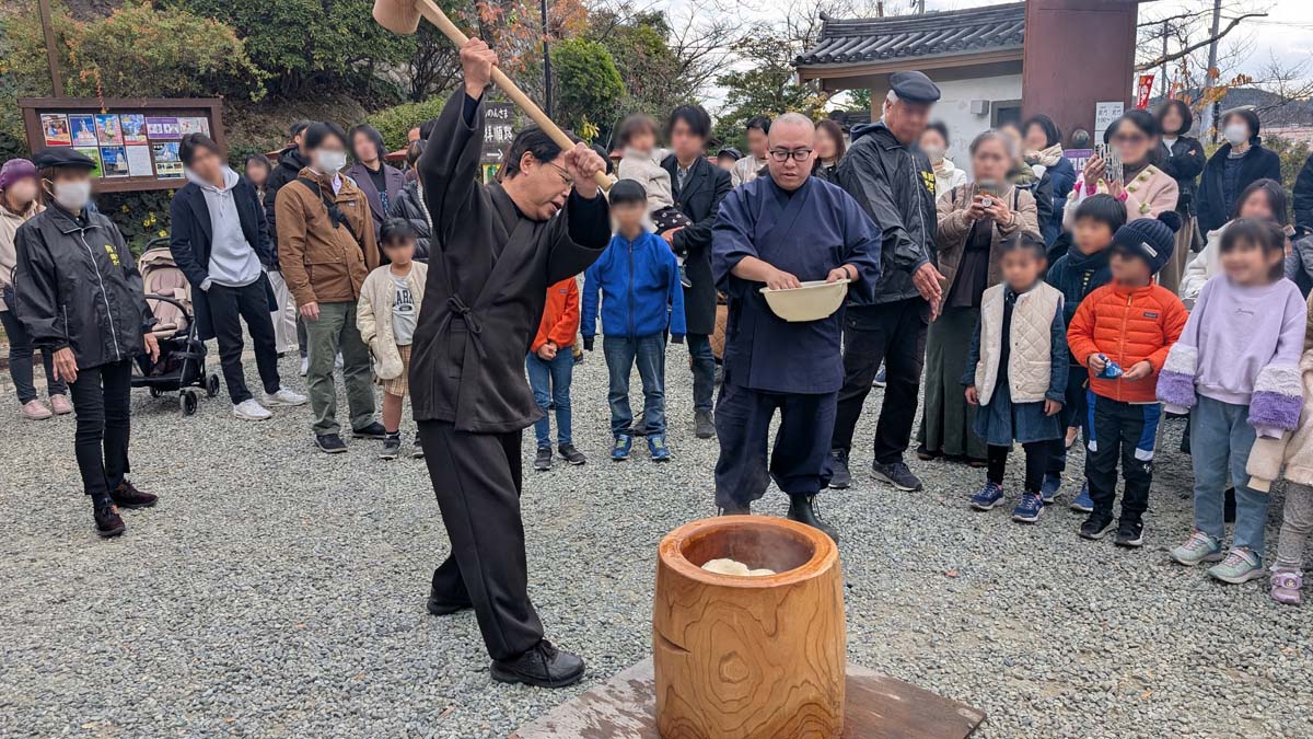 境内でお餅つきをし、ぜんざいのふるまい、そして、人形供養など、境内各所で様々な催しをいたしました。