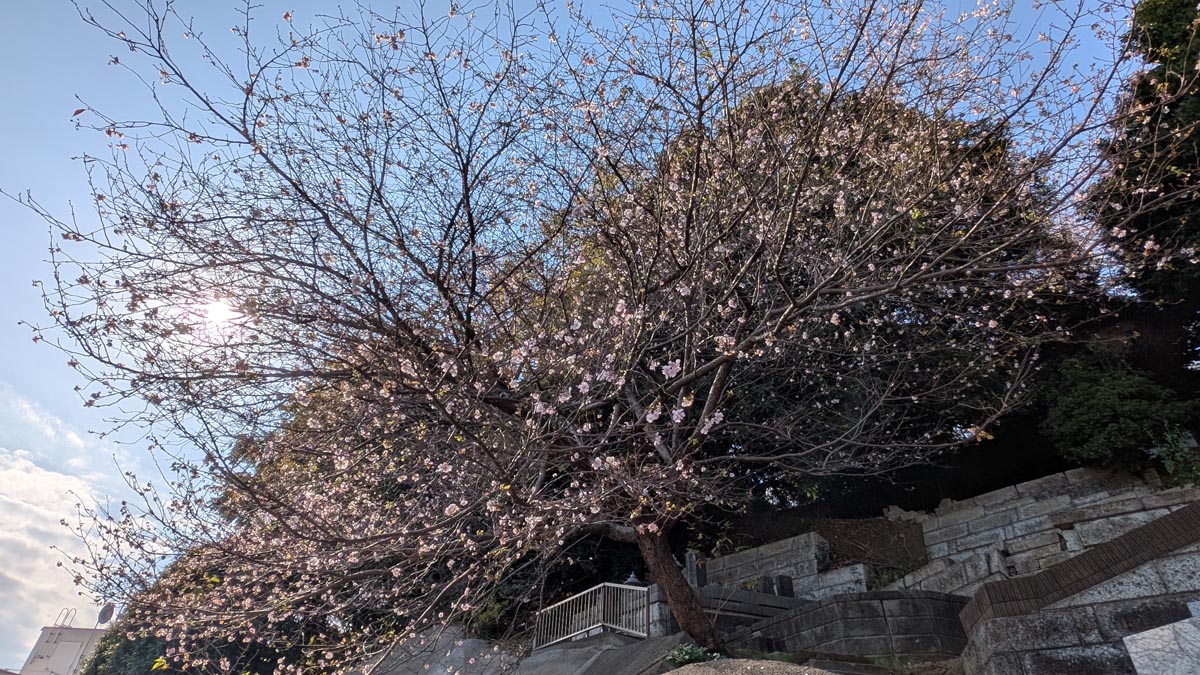 貞昌院の駅側墓地の一角に、十月桜が植えられています。 春と晩秋の一年二期桜を楽しむことができます。
