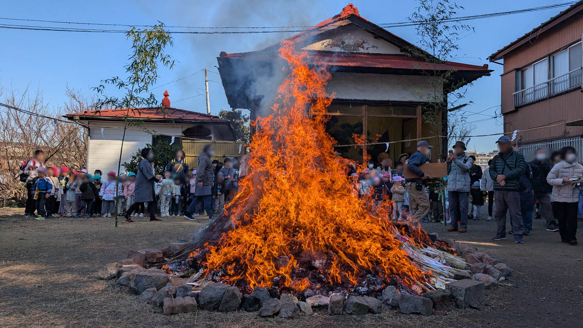 貞昌院に隣接する永谷天満宮で、本日(令和8年1月14日)午前10時よりどんど焼きが行われました。