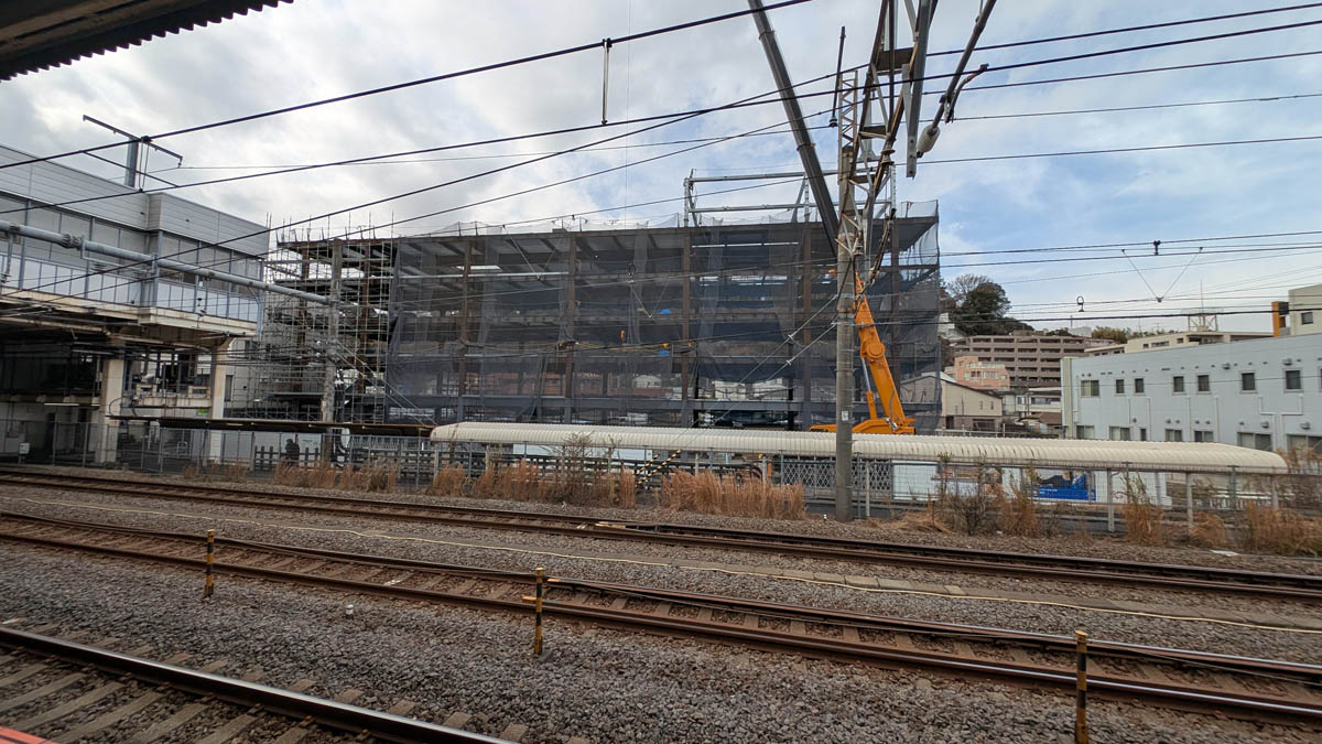 大船駅1番線ホーム中央の場所から西側を眺めると、観音山にそびえる白衣観音像が望めましたが、その景色がだいぶ変わりそうです。