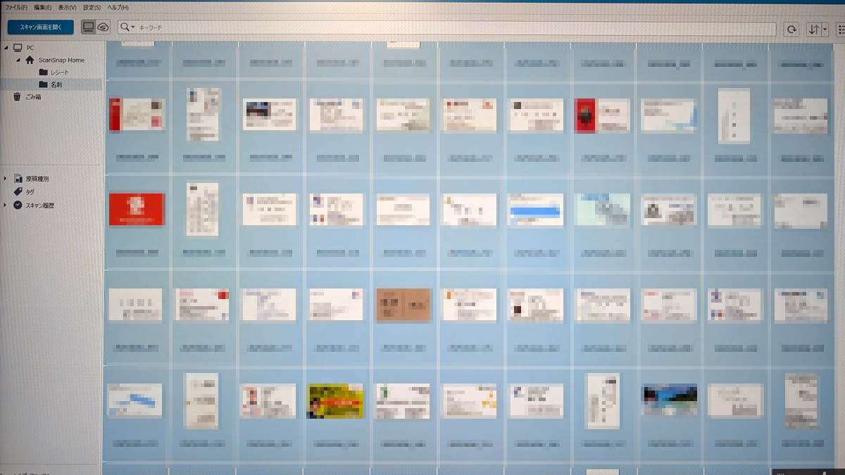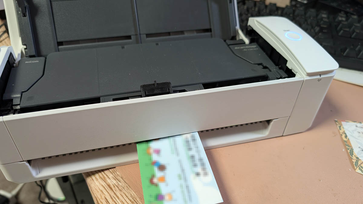以前よりも数段使いやすくなり、名刺のような小さい厚紙も、スイスイ吸い込んで両面スキャンしてくれます。
