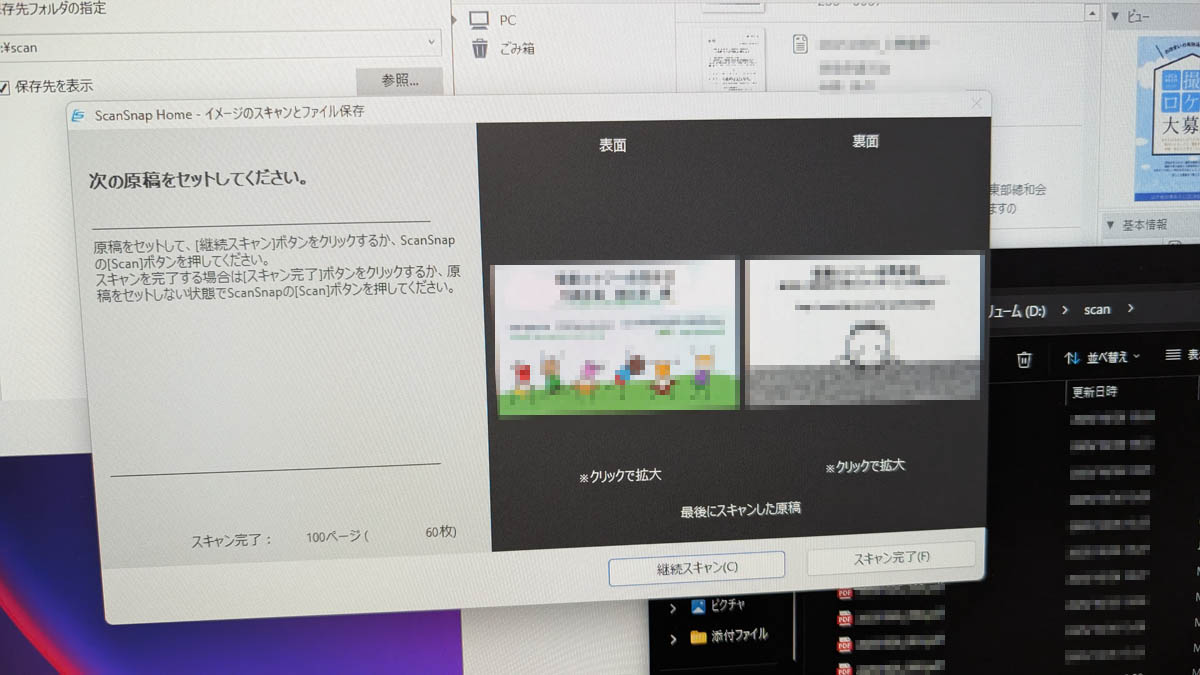 毎日届く郵便物、会議の書類など、紙の書類はたまる一方ですが、日々の合間にデジタル化の作業をしています。